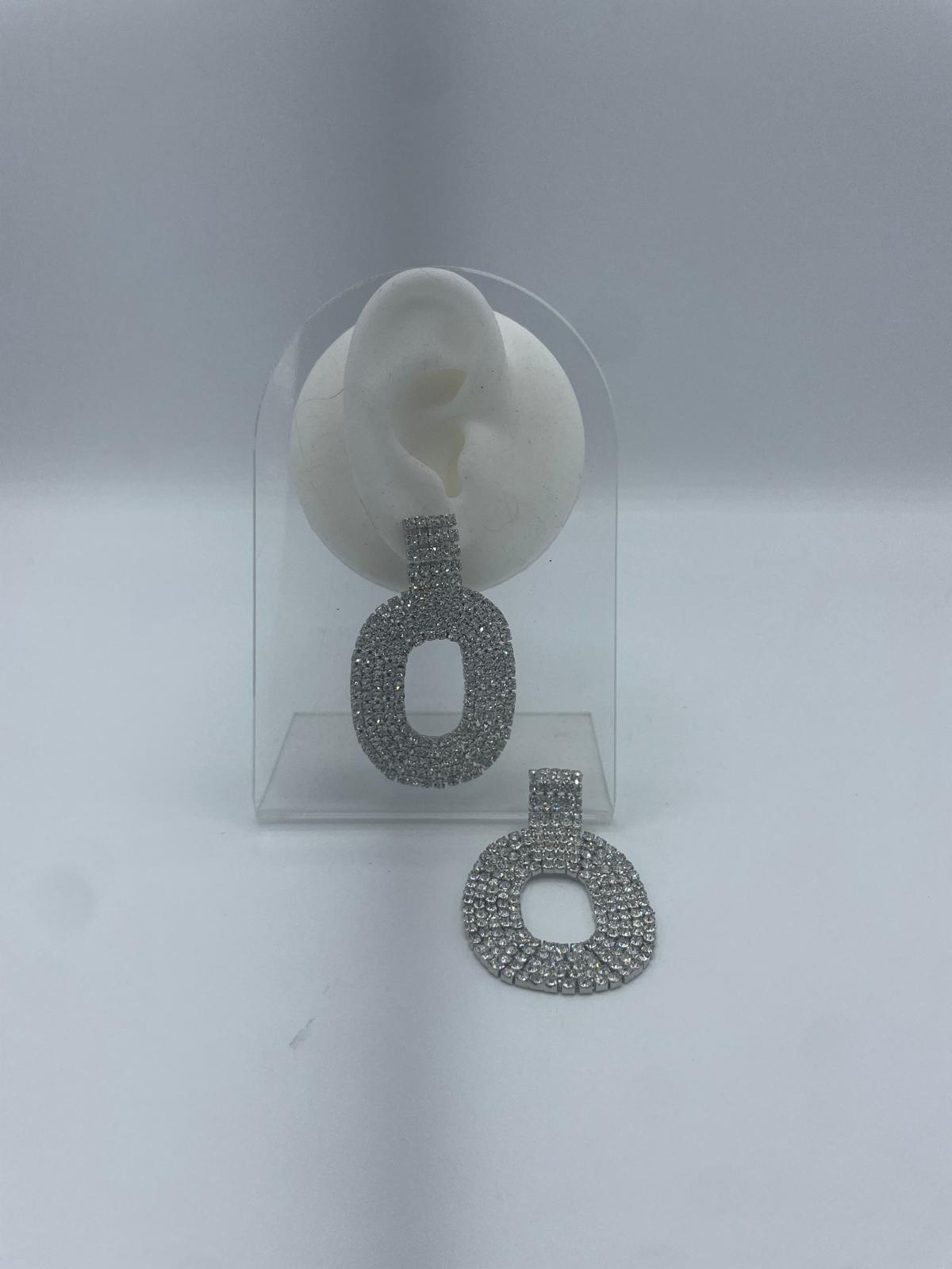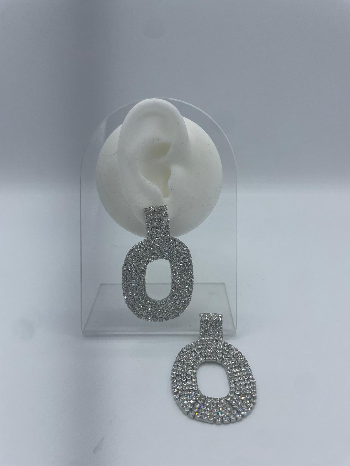 Precioso pendiente de pedrería plateada para lucir con ese vestido que tiene.