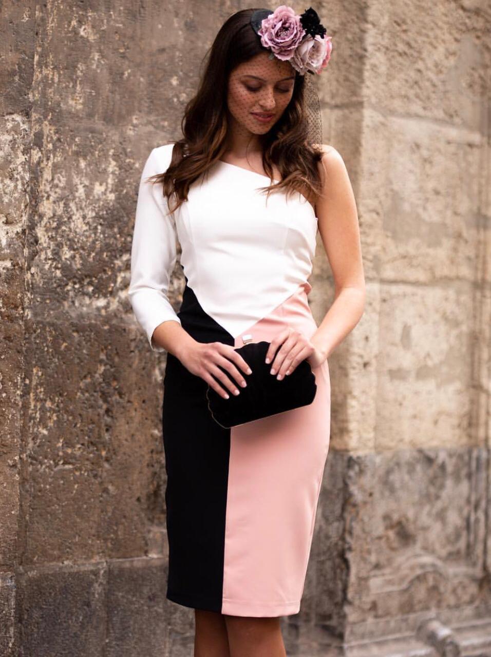 Bonito vestido de crep elástico, con un diseño original y elegante para ese evento que tienes para este año.
